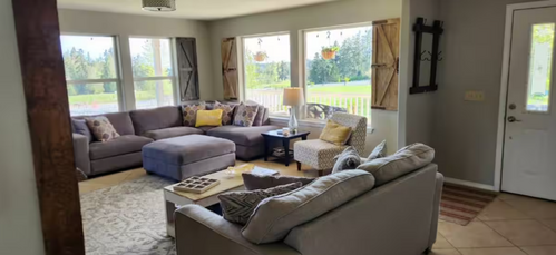 Our house is on a beautiful property with a pond, paddle boats, a hot tub, and more. There are also indoor activities of a pool table and foosball and other games to enjoy with others.