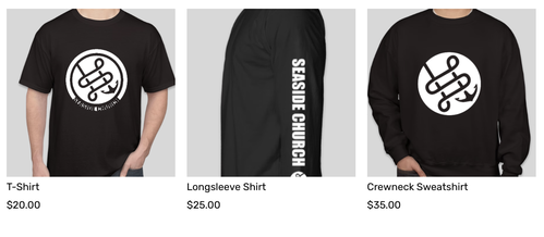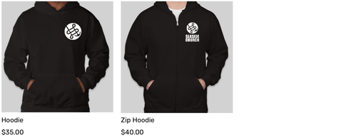 All item prices are cost (no markup for profit). Apparel is being printed by Sports Beyond and cost supports the ministry work they do.